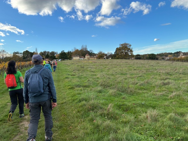 Aujourd’hui Danielle conduit le groupe de la randonnée traditionnelle sur un parcours de 11 kms. Elie avec le groupe de la Rando-Douce couvre une boucle de 6.7 kms. Les deux groupes réunis représentent 31 randonneurs.
